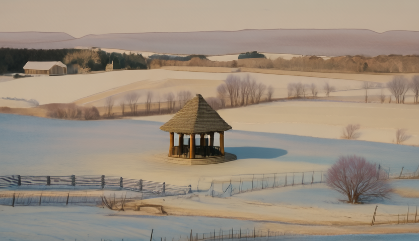 Add a small, floating drone with a camera lens that hovers above the fields, scanning the terrain in slow motion.