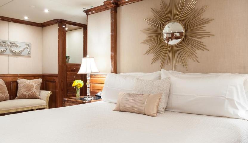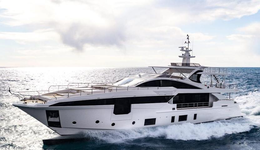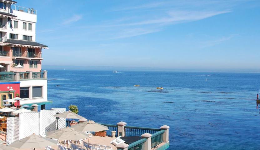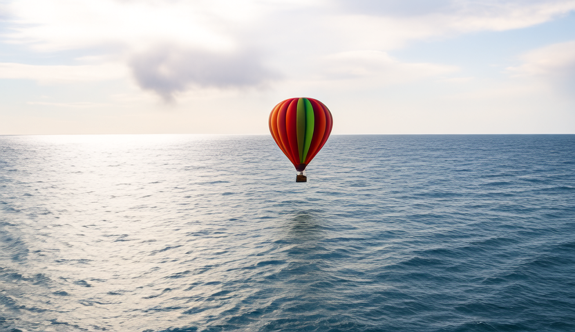 Replace the yacht in the image with a hot air balloon floating just above the ocean surface.
