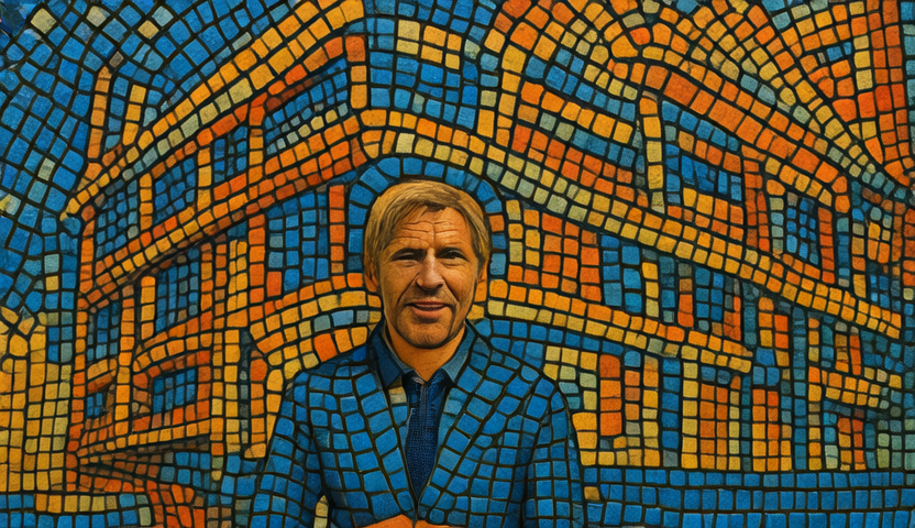 Transfer the image into a colourful ceramic mosaic-tile style.