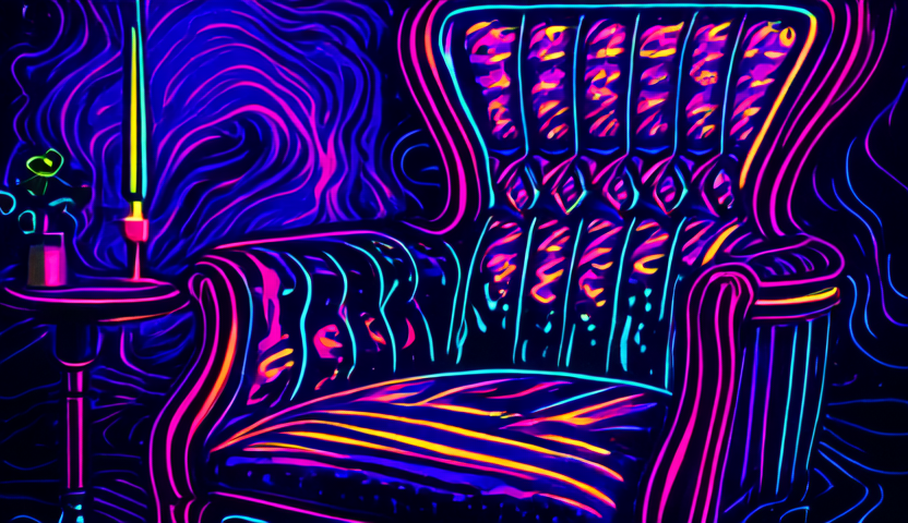 Transform the scene into a vibrant, digital art style with hyper-saturated colors, glowing halos around the figures, and animated light trails from the boombox.