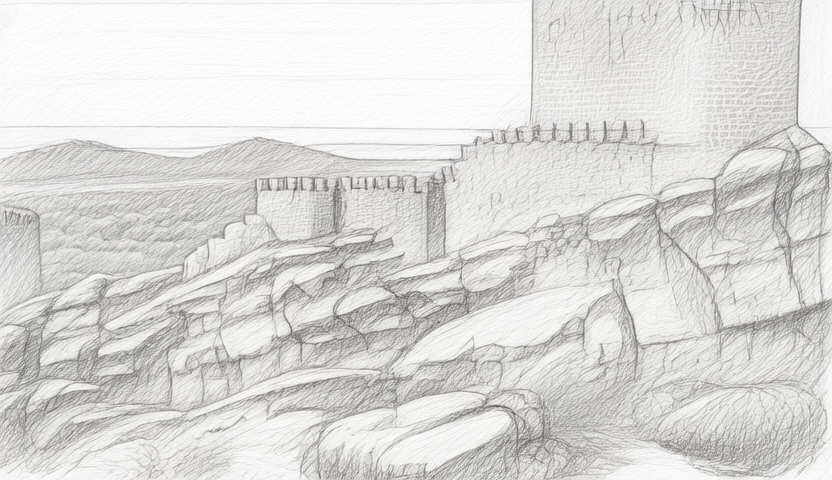 Reimagine the scene in a glowing, bioluminescent ink painting style where the sky pulses with inner light, the rock face glows faintly, and the hikers’ outlines shimmer like starlight.