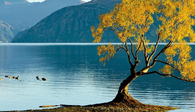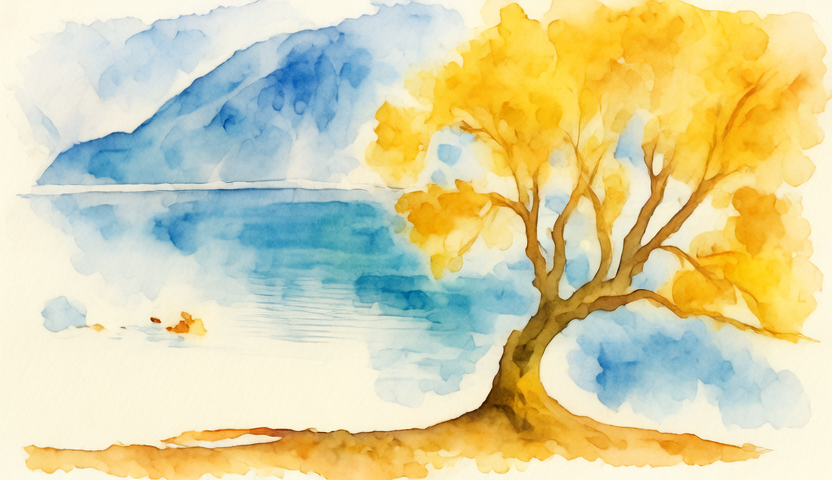As the sum comes up, the leaves of the tree turn yellow and glow in the sun.